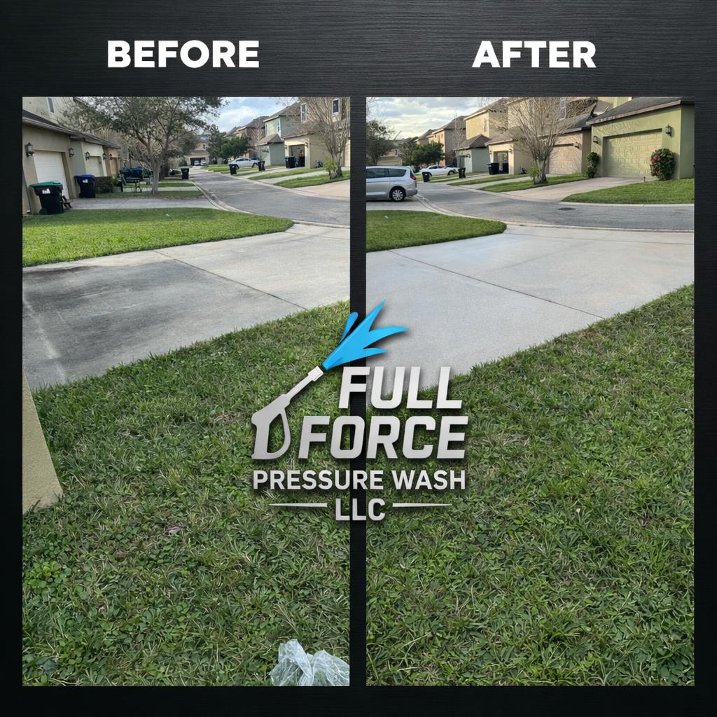 đź’§ Professional driveway, walkway, sidewalk, and fence cleaning across Central Florida. $99 Driveway Special - Up to 400 sq ft - Limited Availability. Book today and see the Full Force difference. đź’§